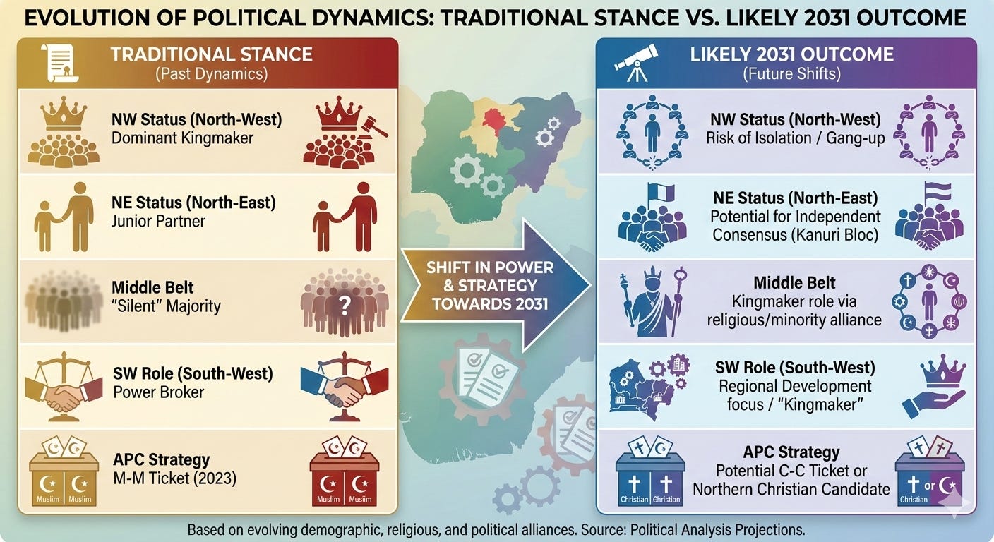 The most stable outcome involves the North-West adopting the “Yorùbá Model”—sitting back, providing the votes, and acting as a co-kingmaker with the South-West. If they instead push for absolute supremacy, the “Monolithic North” will not just shatter; it will likely be outmaneuvered by a coalition of the Middle Belt, North-East, and Entire South.