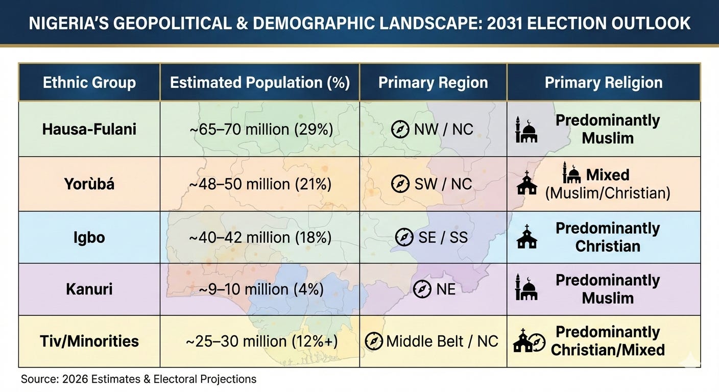 The “Yorùbá Muslim” Precedent: President Tinubu’s success proved that a Southern Muslim Candidate can win if they are perceived as “inclusive” or “non-extremist.” A conservative NW Muslim candidate in 2031 will not enjoy this “Southern Grace” and will likely face intense scrutiny from the South and Middle Belt regarding “Islamist tendencies”.